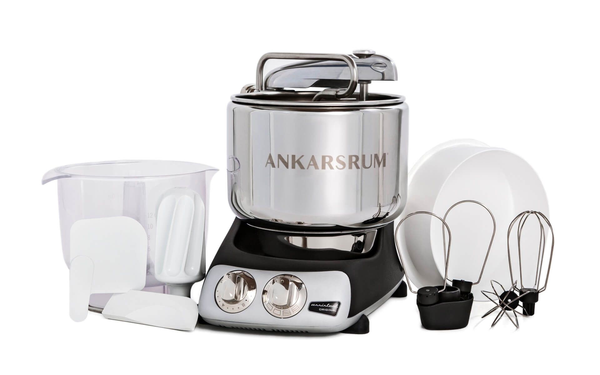Každé standardní balení multifunkčního robotu Ankarsrum Assistent Original obsahuje příslušenství, které uživateli usnadní vaření a přípravu pokrmů a poskytne neocenitelnou pomoc při pečení všeho od bábovek až po chleba. Jedná se o nejnovější model klasického pomocníka Ankarsrum s několika novými chytrými funkcemi a vylepšeními.