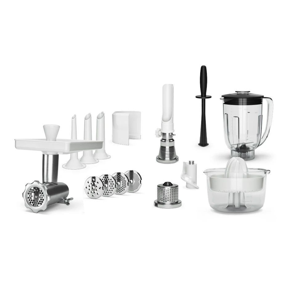 Sada Deluxe obsahuje tři nejoblíbenější příslušenství ke kuchyňskému robotu Ankarsrum a to z něj dělá víceúčelového pomocníka ve vaší kuchyni.