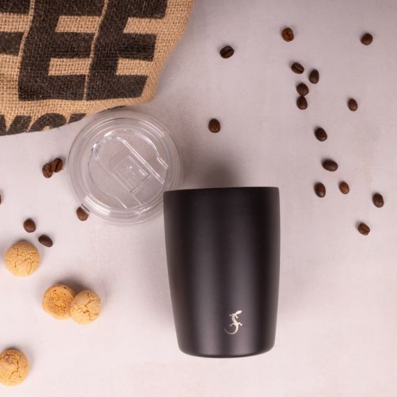 Hrnek perfektně padne do běžných držáků na nápoje a je tak ideální pro cesty autem, do práce nebo na výlety. Stylové průhledné víčko s posuvným otvorem umožňuje pohodlné pití i během jízdy, ale můžete si vychutnat kávu i bez víčka – díky příjemně tvarovanému okraji.