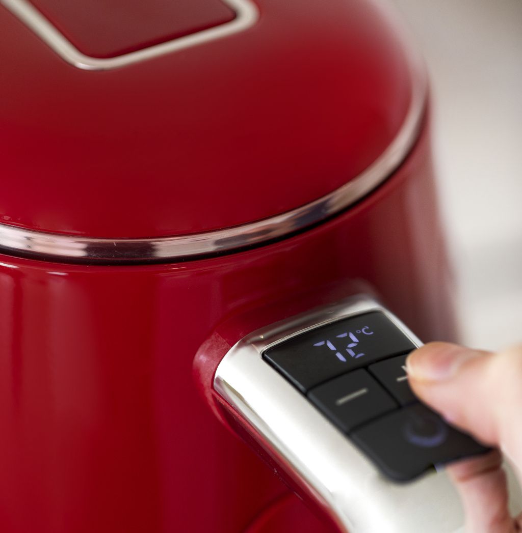 Pro milovníky čaje i kávy je správná teplota vody zásadní. Elektronické ovládání umožňuje snadno zvolit teplotu v rozmezí od 50 do 100 °C (50, 60, 70, 80, 90, 95 nebo 100 °C), takže během okamžiku připravíte vodu přesně podle typu nápoje. Ovládací prvky jsou elegantně i prakticky umístěny přímo v rukojeti konvice.