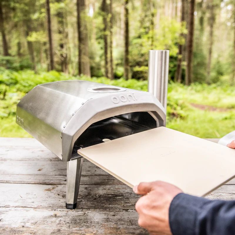 Pozor: Čistěte kartáčem na pizza pec Ooni až po vychladnutí kamene. Nepoužívejte mýdlo ani vodu. Před dalším použitím kámen otočte, aby se spálily zbytky mouky.