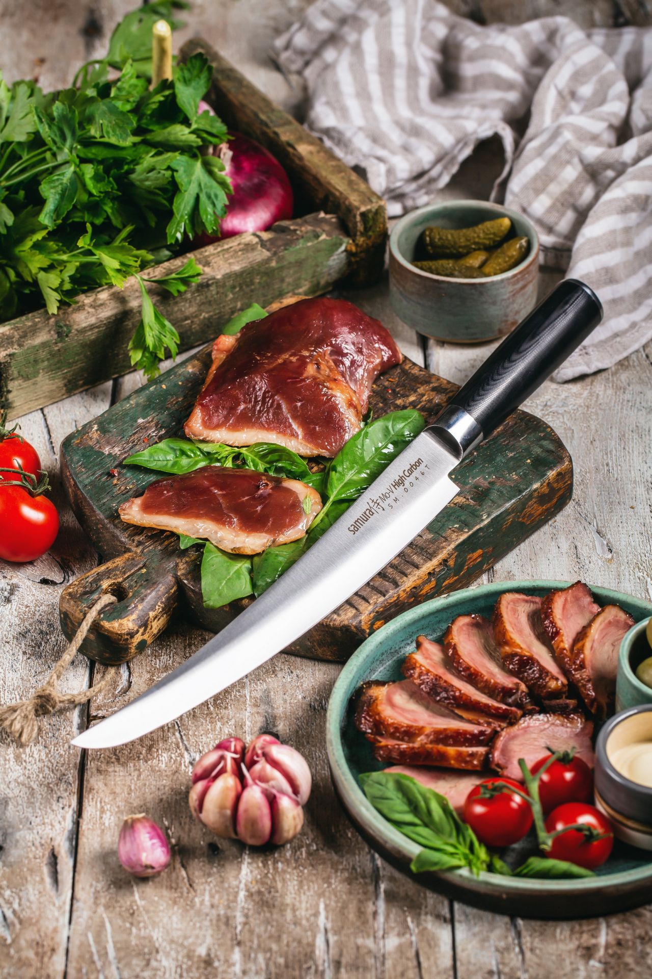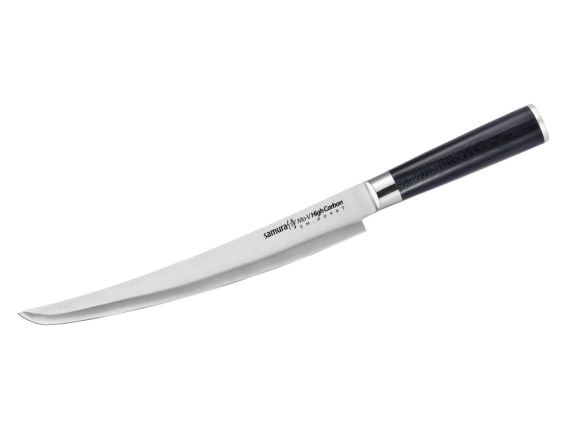 Nože značky Samura jsou vyrobeny z nejlepší japonské a švédské oceli, kalené na 58 - 61 HRC. Čepele mají japonský tvar a jemné zúžení ze špičky, díky čemuž disponují fantastickým řezným výkonem.